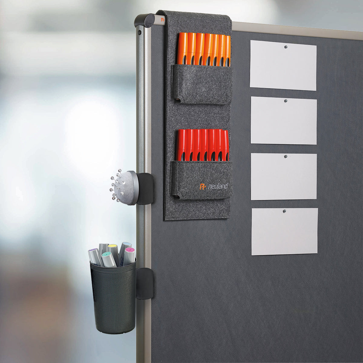 Das ClipOn-Nadelkissen kann an allen Pinnwänden der Serien UniPin (ab Bj. 1999), EuroPin® und NovoPin (außer Wandtafeln), am FlipChart EuroFlip® und Urban verwendet werden. In zwei Farben erhältlich.