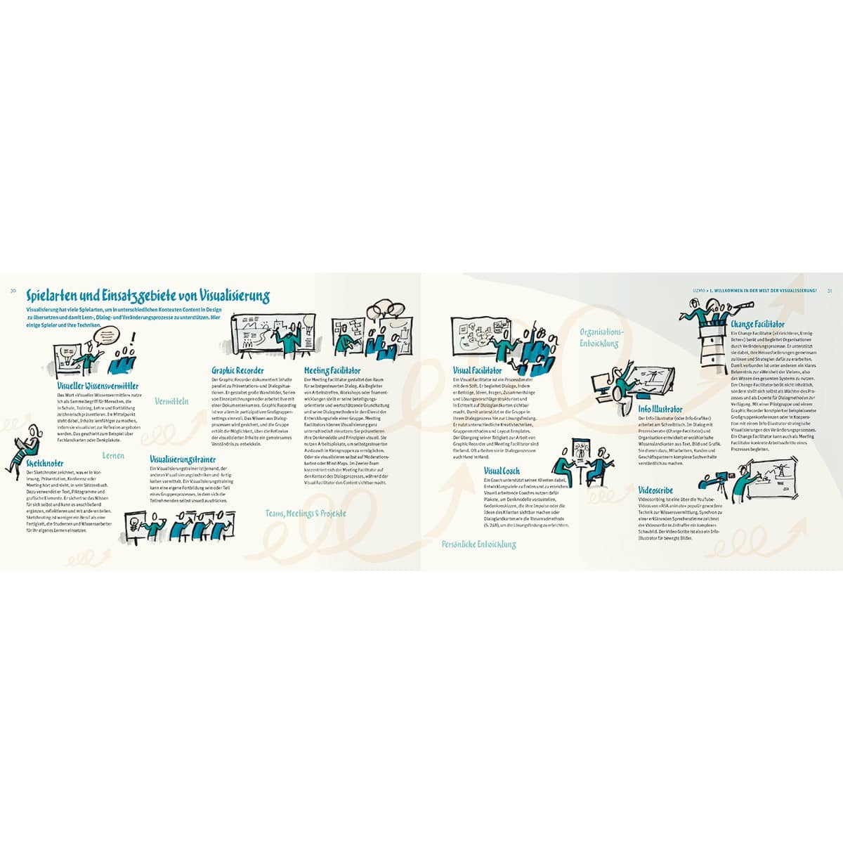 "UZMO – Denken mit dem Stift" stellt erstmalig Visuelles Lernen und Vermitteln, Sketchnoting und Graphic Recording, Visual Facilitating und Visual Coaching und die Arbeit mit Bildern in Veränderungsprozessen innerhalb eines Gesamtsystems vor. Mit Beispielen aus der Praxis für die Praxis und Schritt-für-Schritt-Anleitungen eröffnet es Anfängern und Fortgeschrittenen neue Türen in die Welt der Visualisierung.