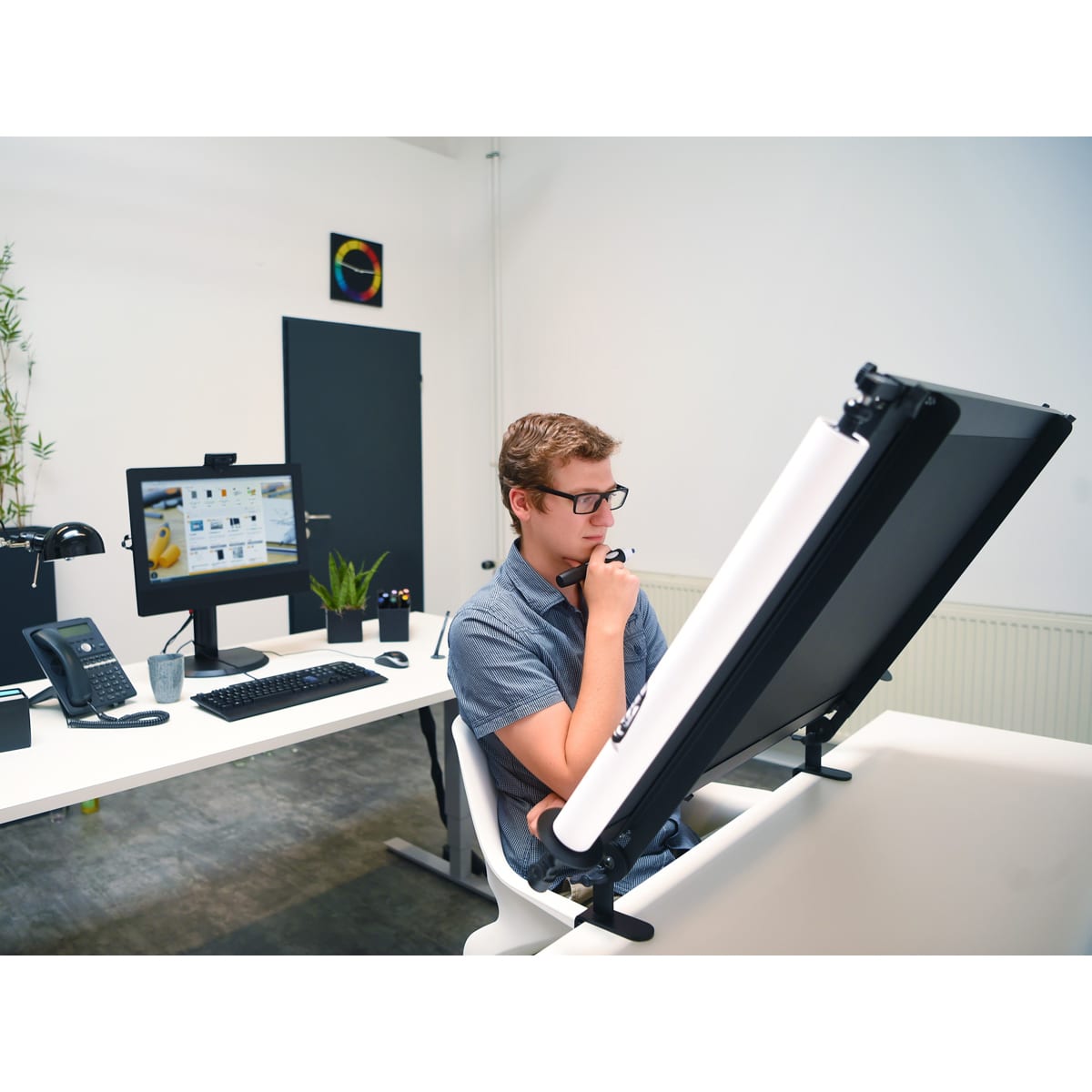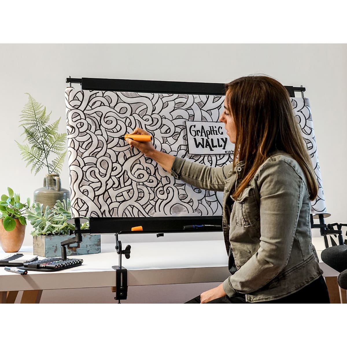 GraphicWally® is the perfect board for anyone who loves to draw, brainstorm or work on concepts. It is easy to transport and can be attached to table tops of different thicknesses thanks to the adjustable clamps. With the separately available LiftBoy, GraphicWally® becomes mobile, can be easily moved around the room and continuously adjusted in height.