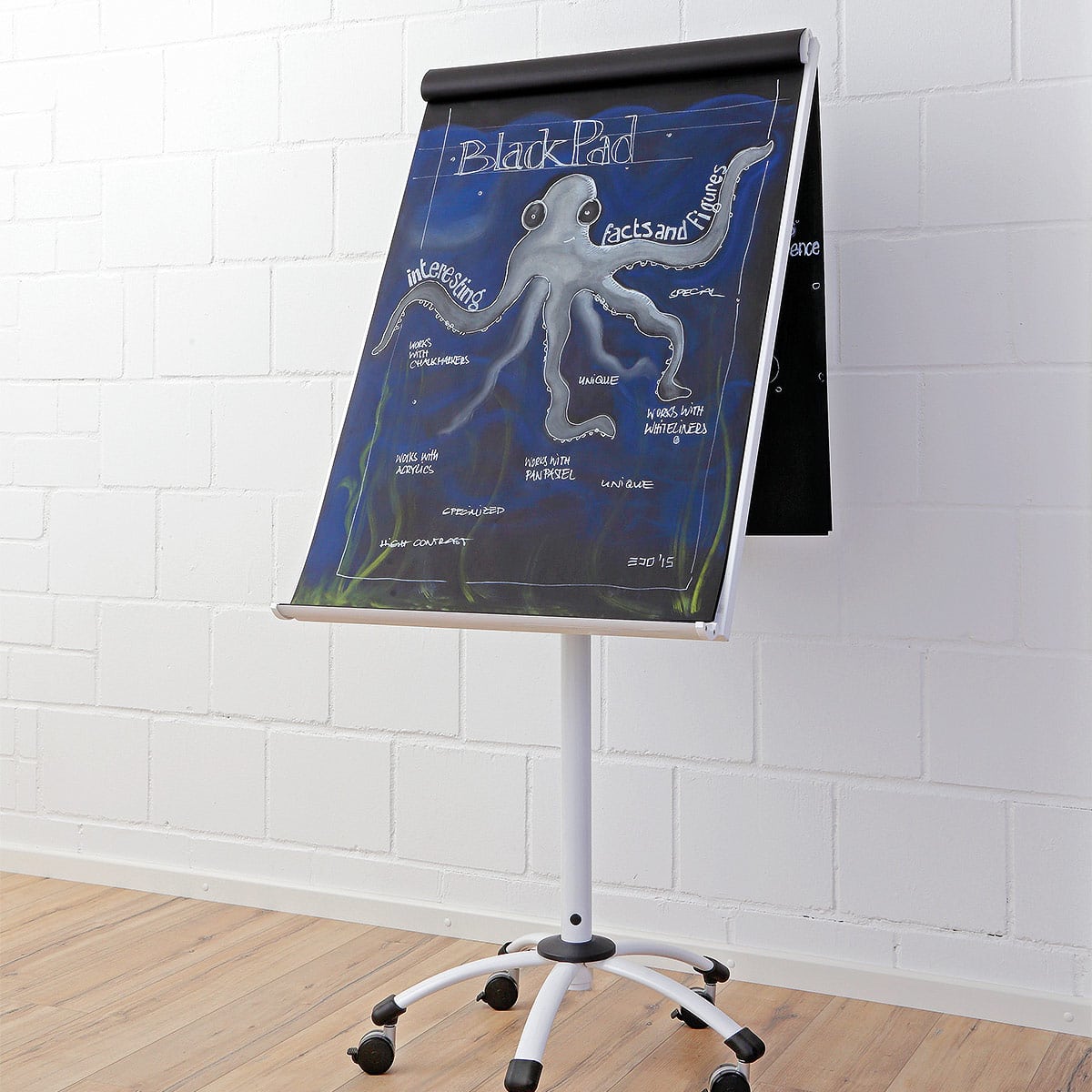 Met de metallic- en covermarkers uit het Neuland-assortiment kun je op de zwarte blokken zeer bijzondere effecten bereiken. Maar ook op dit matzwarte, gerecyclede papier kun je uitstekend werken met de STABILO® woody en de PanPastel® krijtjes. Het sterke contrast maakt jouw visualisatie tot een uniek werk.