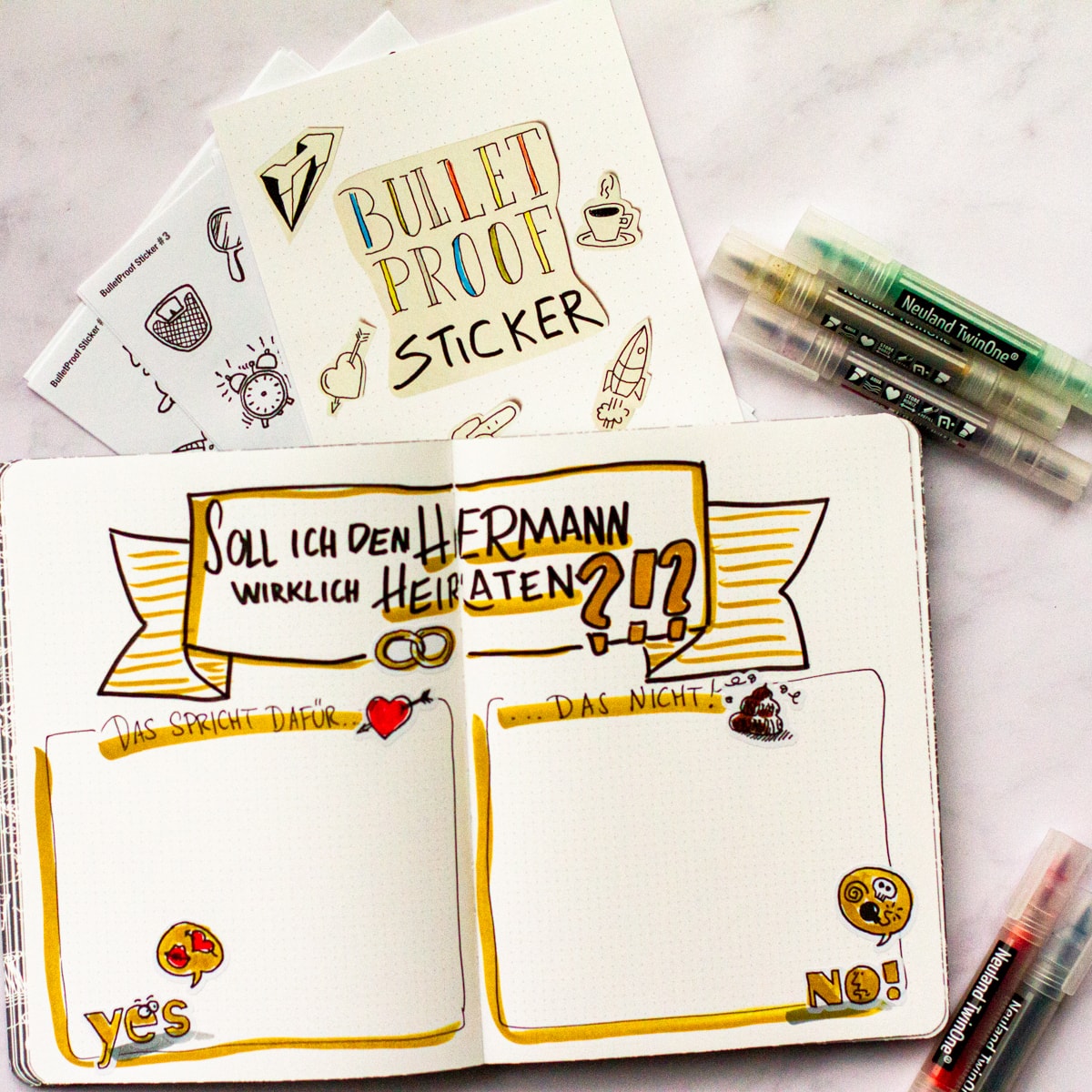 Vul de Bullet Journal of Sketchbook aan en markeer speciale evenementen of afspraken als hoogtepunten met figuurlijk gestanste stickers in verschillende maten en vormen. BulletProof Stickers zijn ook geschikt voor het creatieve ontwerp van wenskaarten, inpakpapier, brieven of sjablonen. De toepassingsmogelijkheden zijn talrijk en uw verbeelding kent geen grenzen. Of het nu in zwart-wit, in kleur of in combinatie met tekst of tekeningen is, uw BulletProof Stickers zullen in een mum van tijd een echte blikvanger zijn.