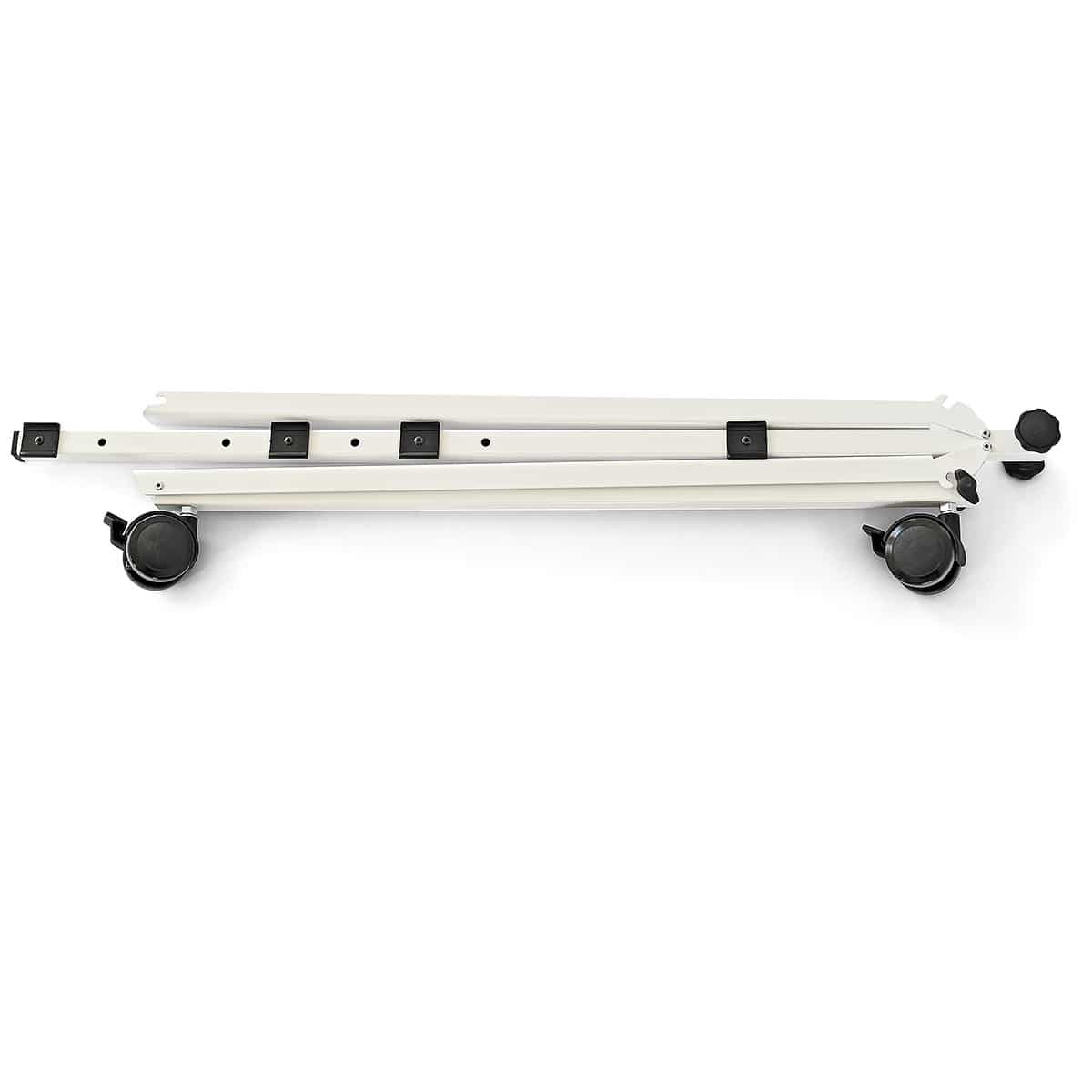 Inklapbare poten van plaatstaal met 4 kunststof wielen voorzien van