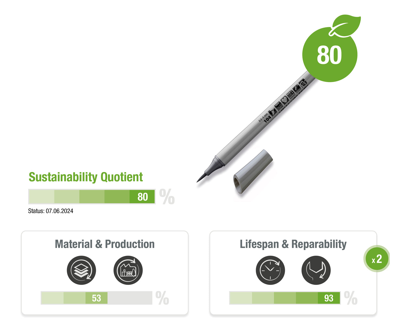 To calculate the sustainability quotient, we compare the two components based on their significance: Production is given a straightforward value, while the product lifespan is factored in the final assessment with a weight of 2.