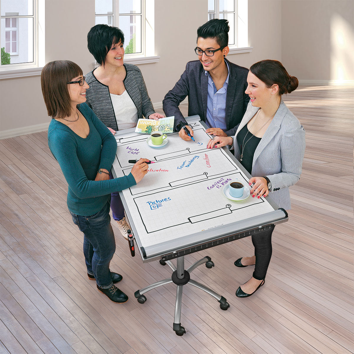 De sketch@work is het ideale hulpmiddel voor iedereen die vandaag de dag het volledige spectrum van visualisatie wil gebruiken. Dankzij de uitgekiende draai- en kanteltechnologie, gecombineerd met hoogteverstelling, kun je ermee werken in klassiek staand formaat of praktisch liggend formaat. De tekentafelachtige visualisatie-instelling is voor jou beschikbaar.