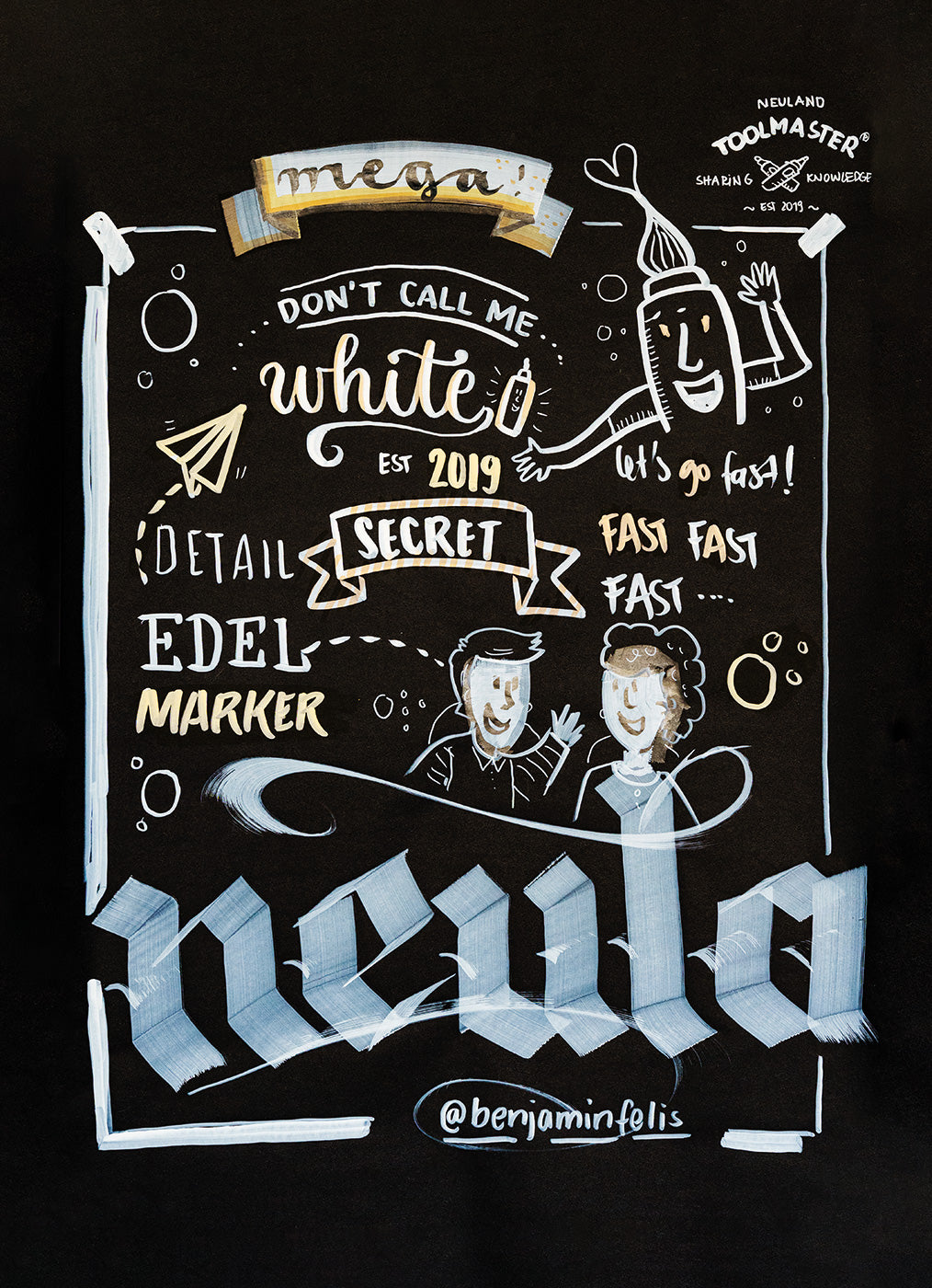 hinterher noch mit einem wasserbasierten farbigen Neuland Marker: Damit fügst du deiner Visualisierung weitere Effekte hinzu. Dass du sie alle in klassischer Neuland-Manier nachfüllen kannst, ist dabei selbstverständlich. Beim Neuland BigOne® Cover zum Beispiel reicht eine RefillOne-Flasche locker für 11 Füllungen.